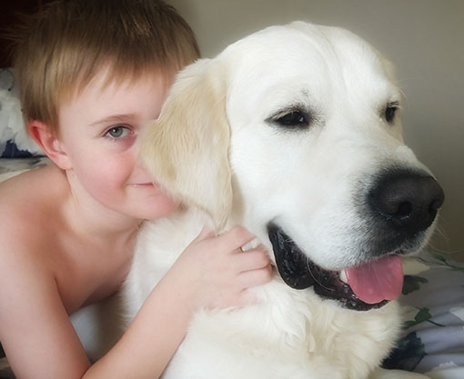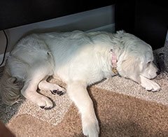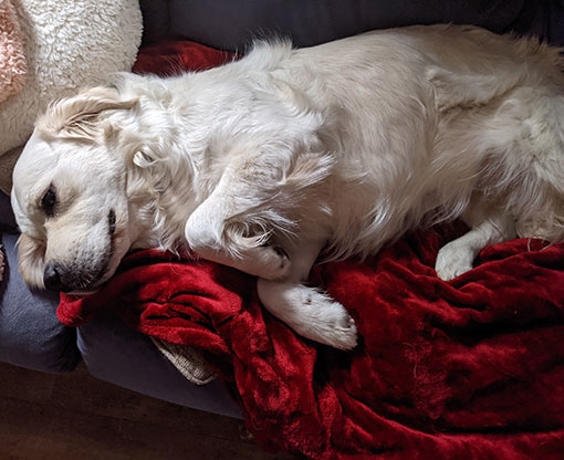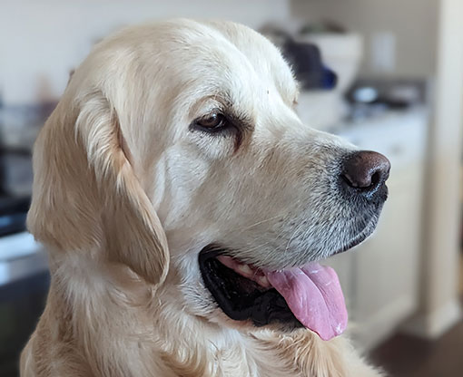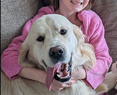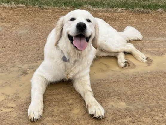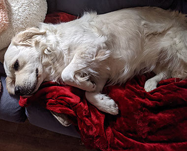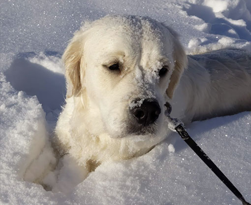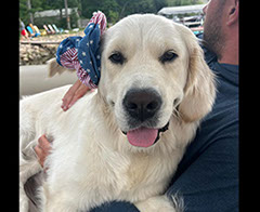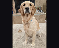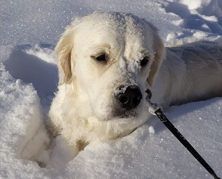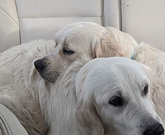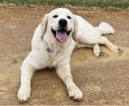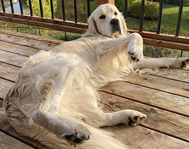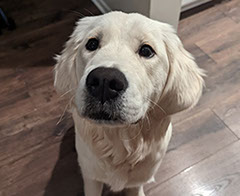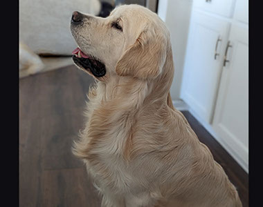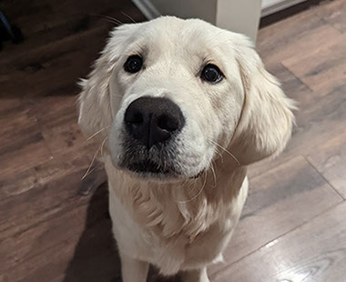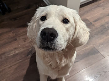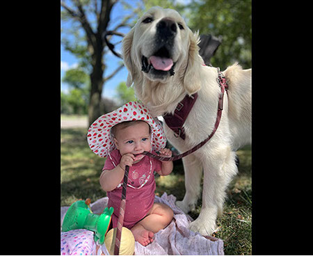 Mabel is a very nurturing golden, as she loves her baby (human) sister ever so much. She has a great mix of both love and play in her, while being very gentile and fun. Mabel loves to explore out on the walking trails, and play in the water with her puppy friends, both young and old. She is no stranger to the boating life at all, and looks forward to any kind of adventure she can have with her humans. She definitely is a great Work-From-Home co-worker.