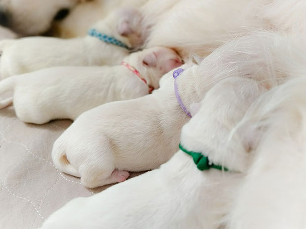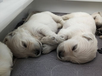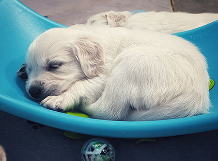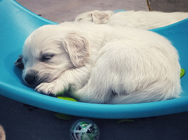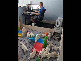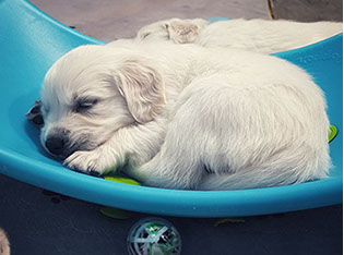 This socialization often helps prevent inappropriate responses, such as fear, over-reactivity, shyness, or aggressive behaviors when they become adults. Exposing a puppy to new experiences, in a controlled environment, will help ensure a calm, confident and psychologically healthy adult dog. The more a puppy is exposed to, the more they learn! Socialization begins with our development program, but it is a lifelong process that needs to be continued when the puppy goes to its new home. Our goal is to maximize the potential of each puppy by stimulating it's learning ability, environment, curiosity, and natural instincts. These experiences will provide long-term effects benefiting the puppy's future.