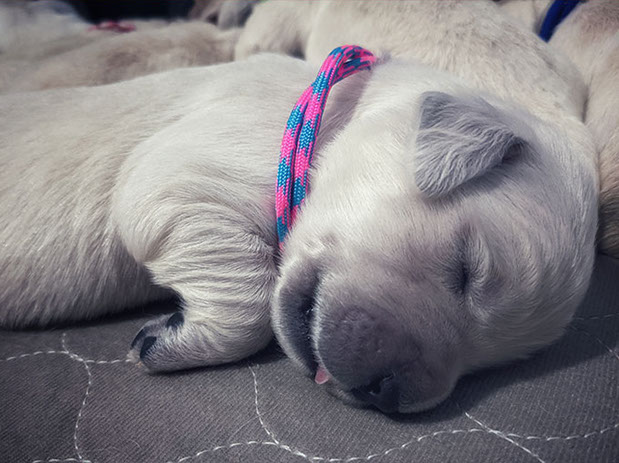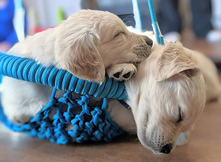 We begin making notes of each puppy from the time they are born to get an early indication of their individual traits, which can provide clues to subsequent development. Starting at six weeks of age, we start performing some tests to determine if they possess the traits and natural tendencies to be placed in an assistance dog program. These evaluations are complemented with temperament testing.