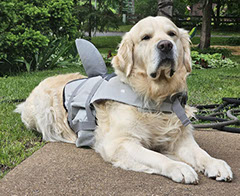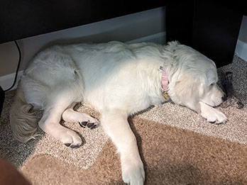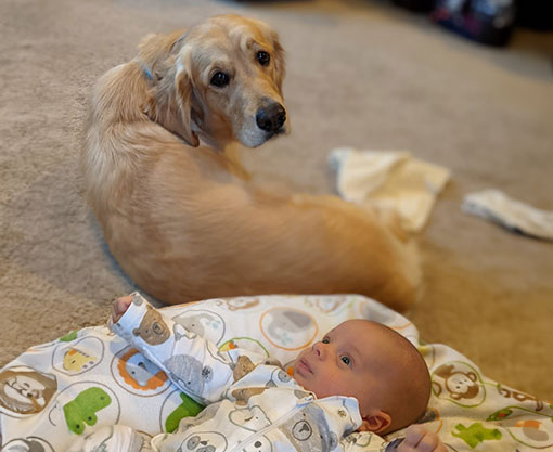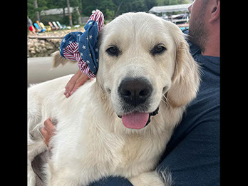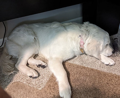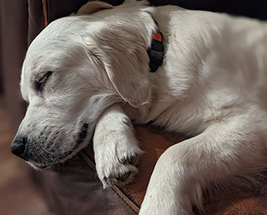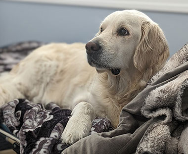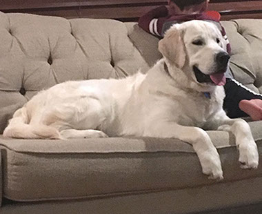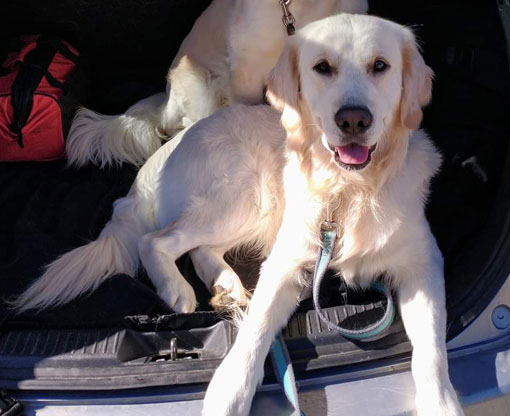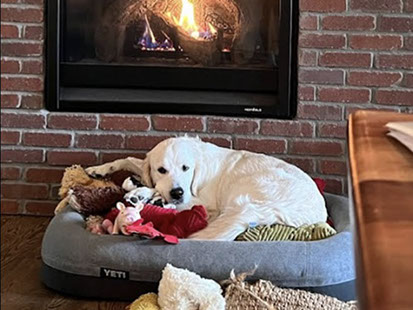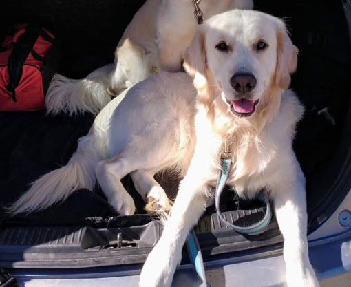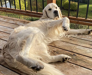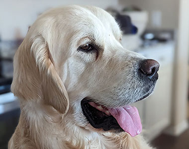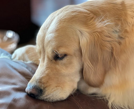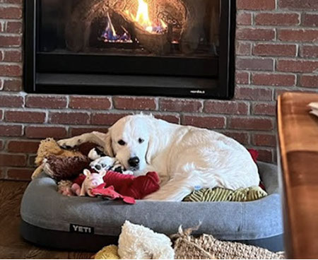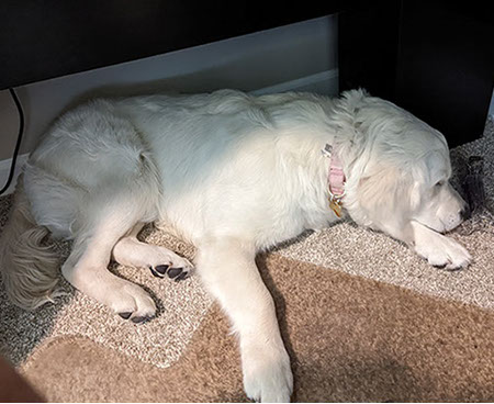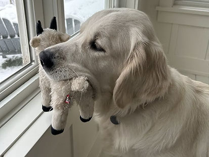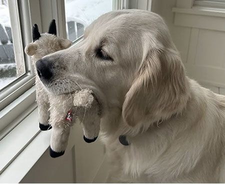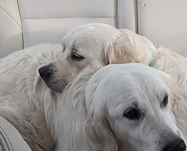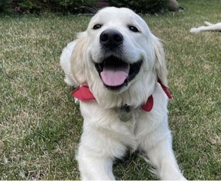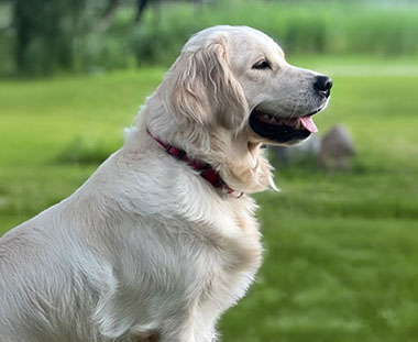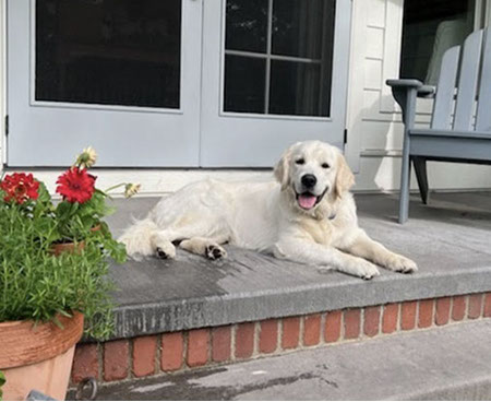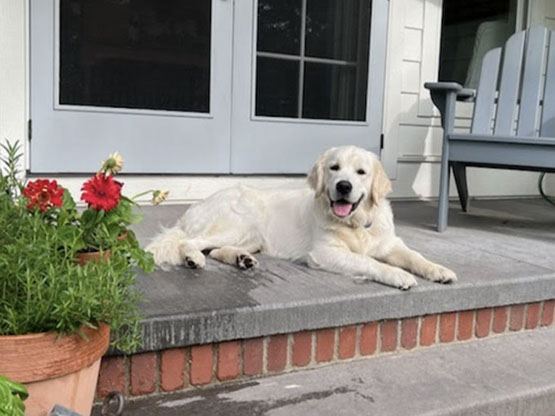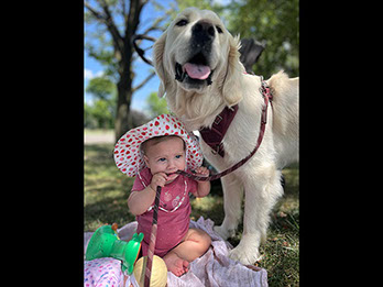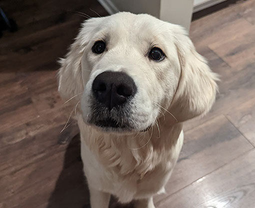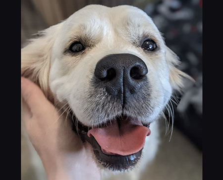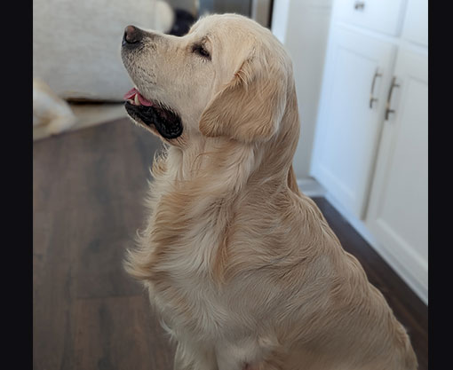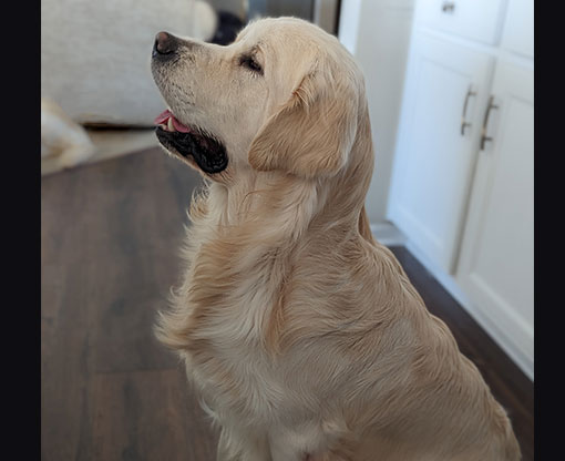 Mabel is a very nurturing golden, as she loves her baby (human) sister ever so much. She has a great mix of both love and play in her, while being very gentile and fun. Mabel loves to explore out on the walking trails, and play in the water with her puppy friends, both young and old. She is no stranger to the boating life at all, and looks forward to any kind of adventure she can have with her humans. She definitely is a great Work-From-Home co-worker.
