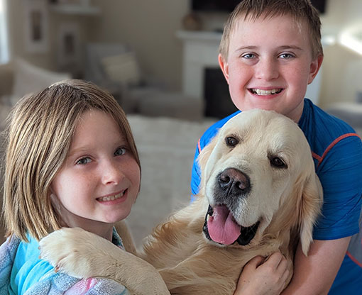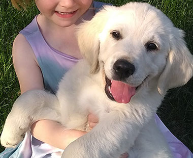 Poppy is a wonderfully mild-tempered dog. She loves kids and is very attentive to all her people. She is playful, yet extremely gentle (especially with young children). She enjoys following you from room to room, to make sure she doesn’t miss out on any fun. Poppy also has a nice, feminine build with a very soft coat.