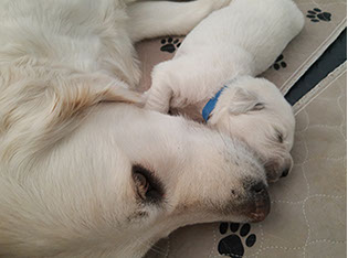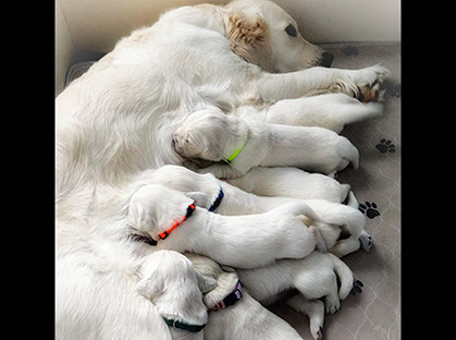 During this time, we are looking at sociability, emotionality, problem solving ability, group dynamics, motor abilities, energy level, terrain test to ascertain the puppy's willingness to walk across various textures, response to environmental stimuli, touch sensitivity, following, restraint, social dominance, elevation dominance, retrieving, sound sensitivity, sight sensitivity, stability and structure and more. We typically find that temperament testing gives confirmation of the knowledge we have already gained about each puppy, and which show natural inclinations toward future assistance or career work. Although we are proponents of temperament testing, we realize it is not intended to predict future performance. Rather, it is used to evaluate a puppy's temperament at the time of testing that can help provide some predictive clues of what each dog's basic personality could be, and what type of home would be best suited for each puppy.