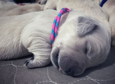 We begin making notes of each puppy from the time they are born to get an early indication of their individual traits, which can provide clues to subsequent development. Starting at six weeks of age, we start performing some tests to determine if they possess the traits and natural tendencies to be placed in an assistance dog program. These evaluations are complemented with temperament testing.